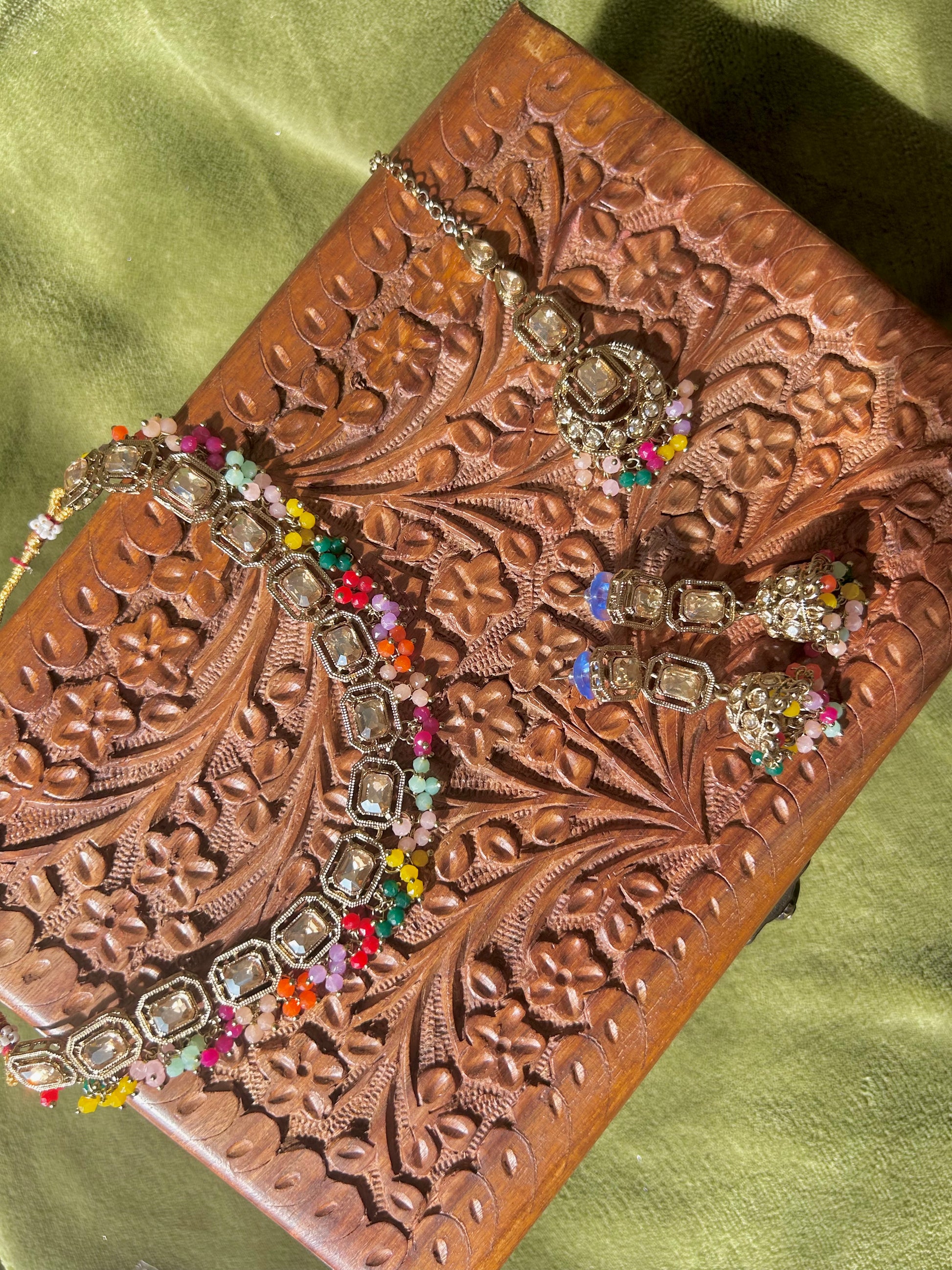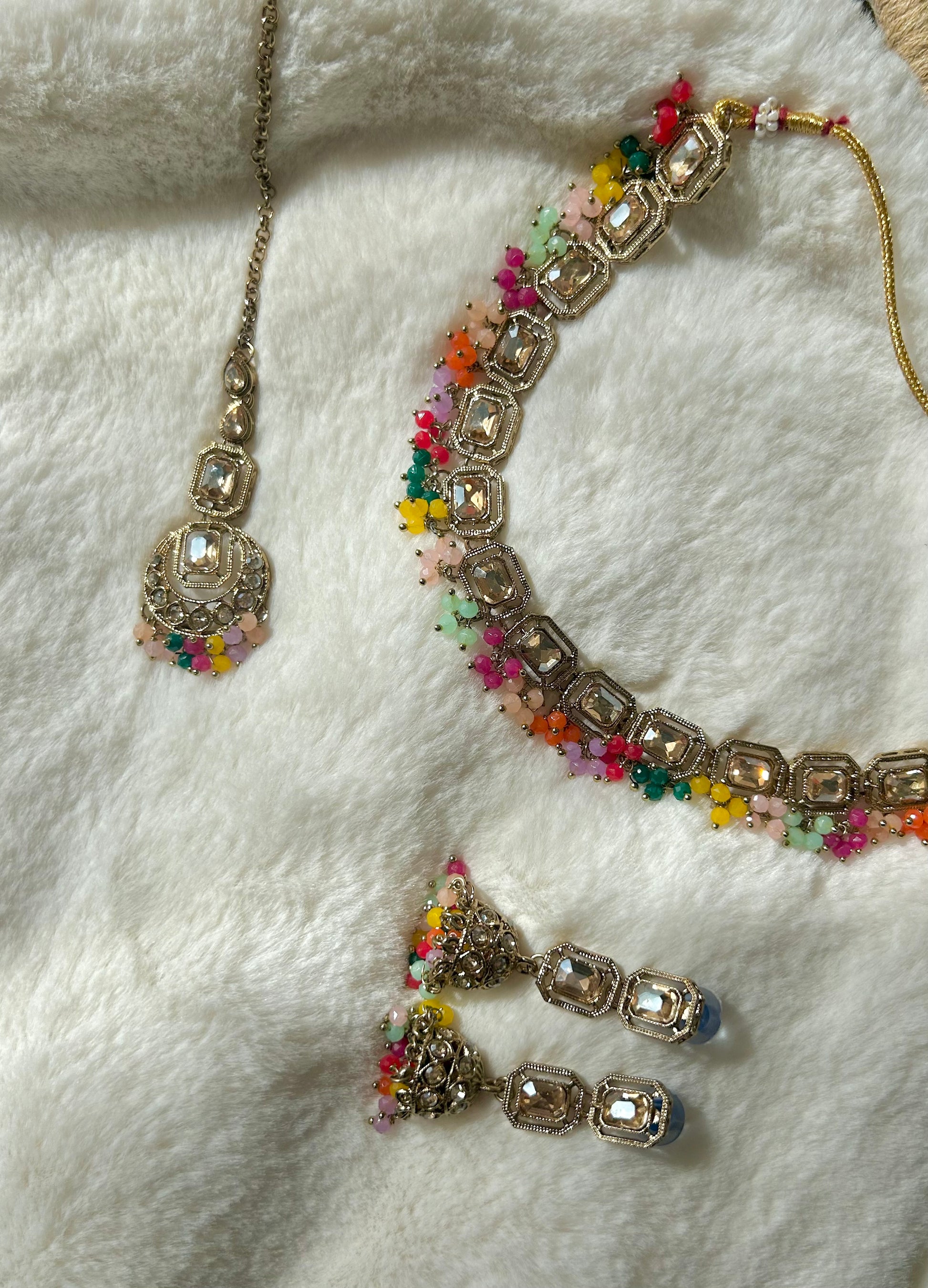 Beautiful choker set with matching jhumkay and a tikka!