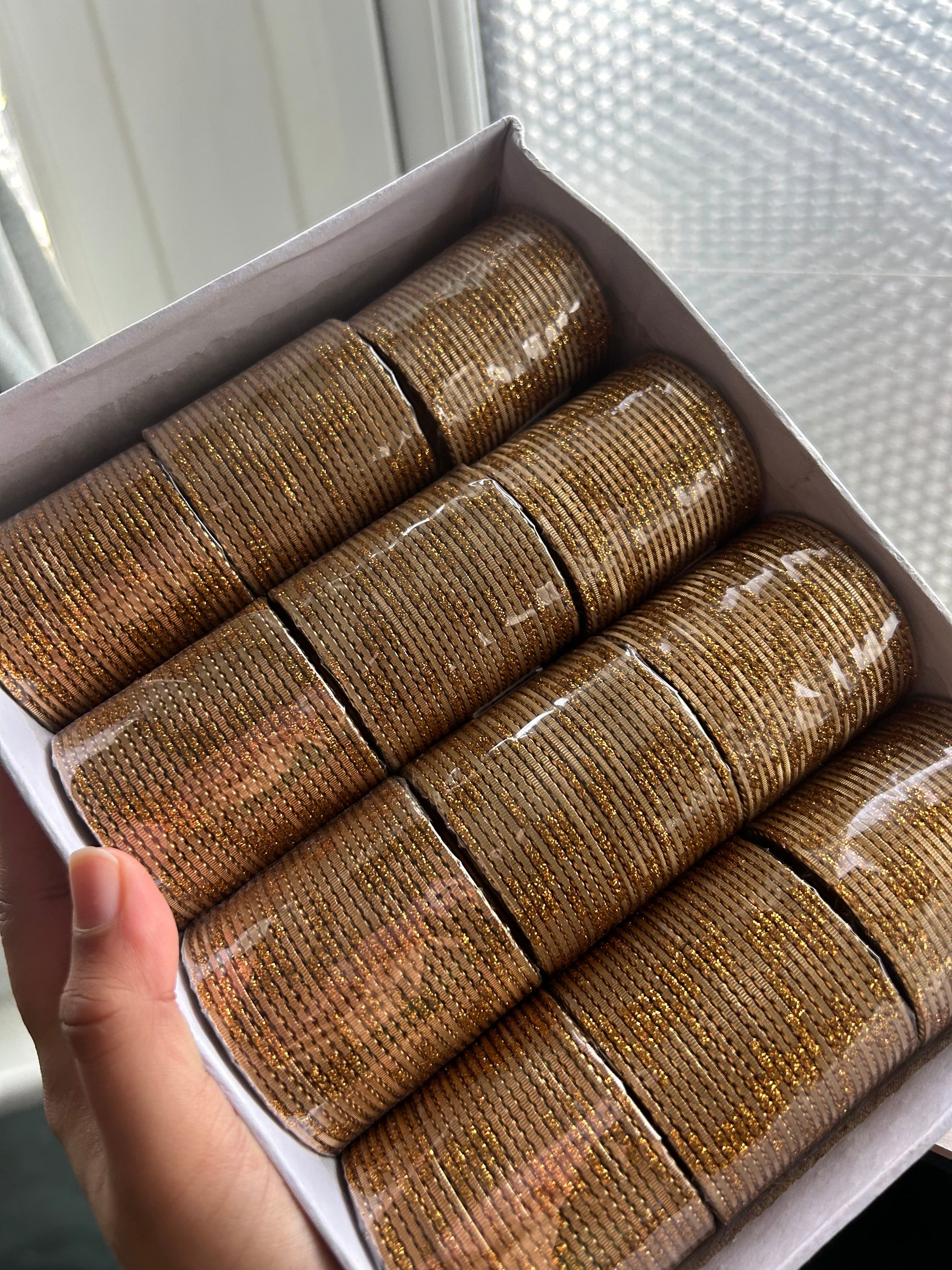 The colours are as shown in different lightings! Colours/designs may vary ever so slightly (more/less diamonté's)