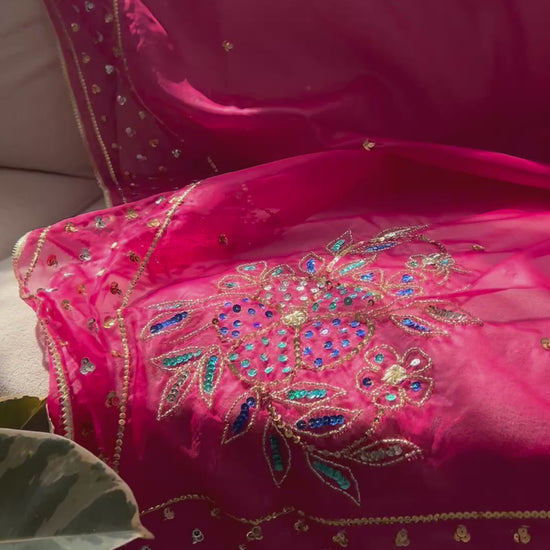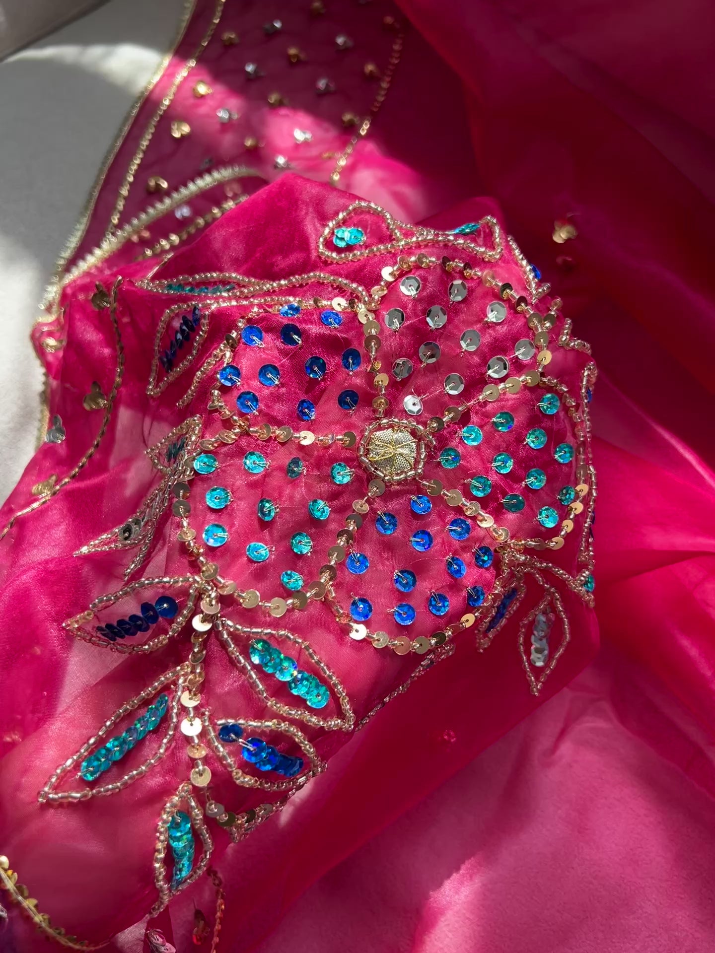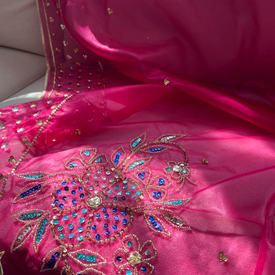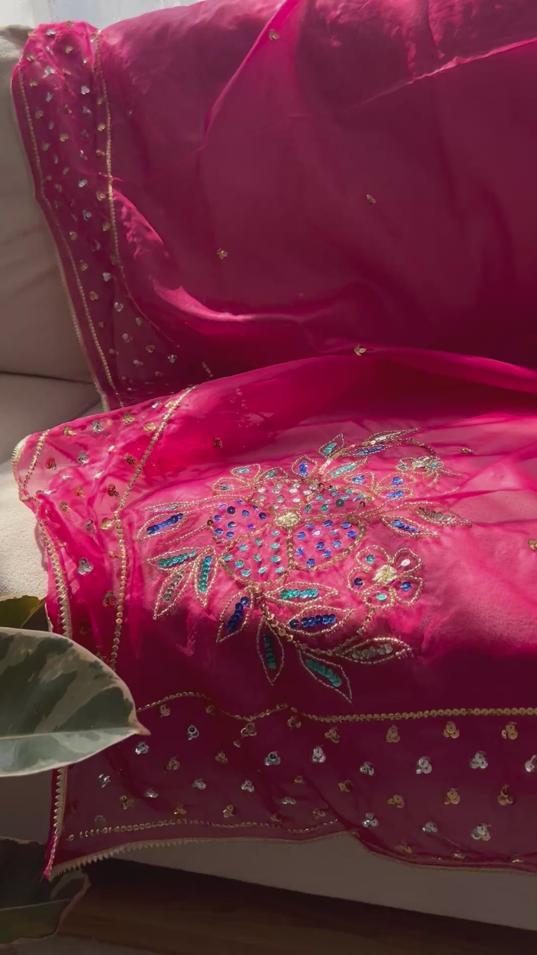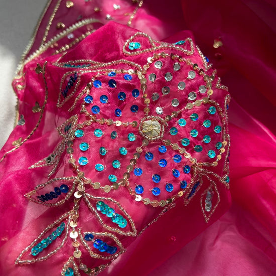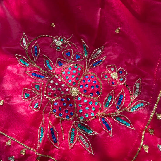 On opposing ends of the Dupattas have a stunning hand embroidered beaded flower with different coloured sequins. The colours may vary slightly due to lighting and editing etc !