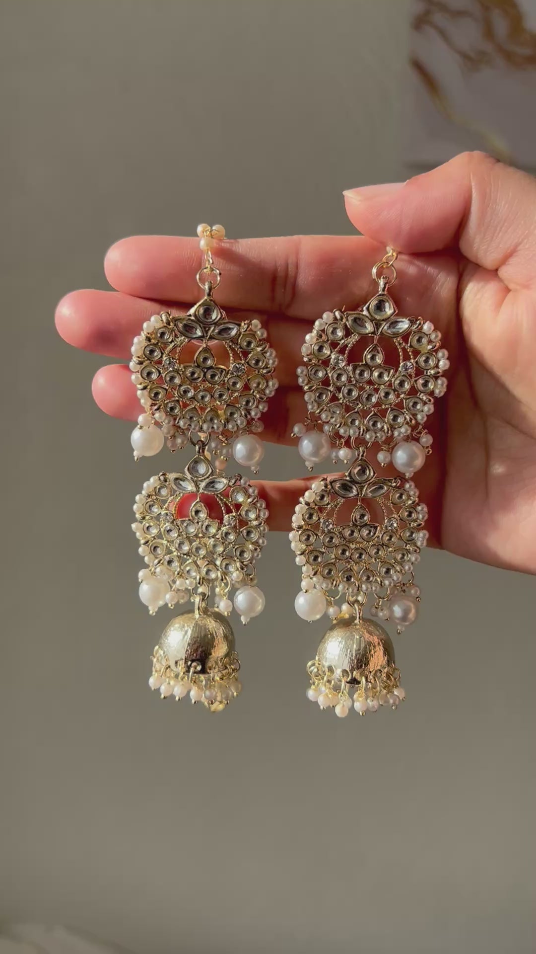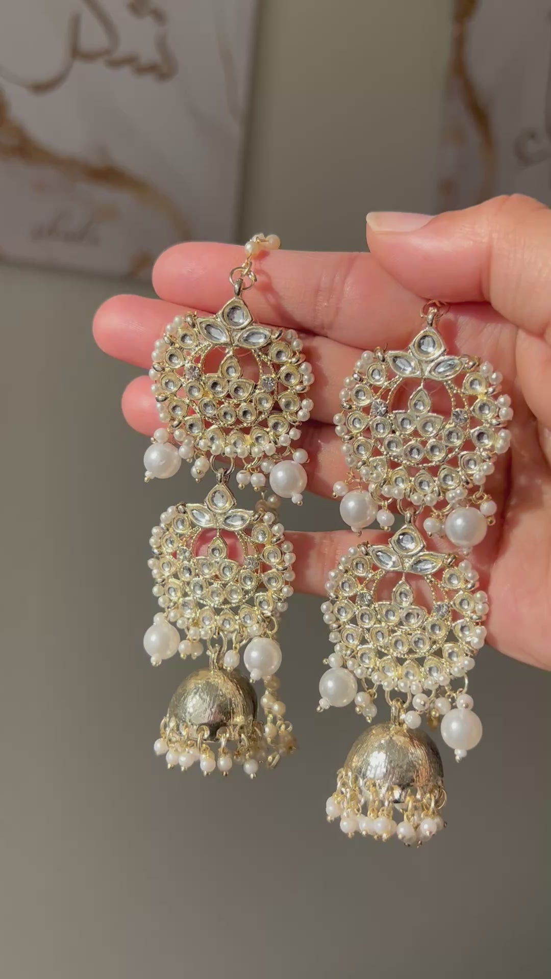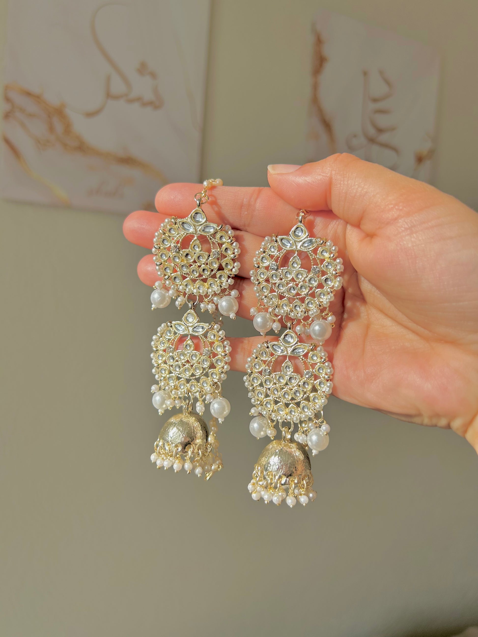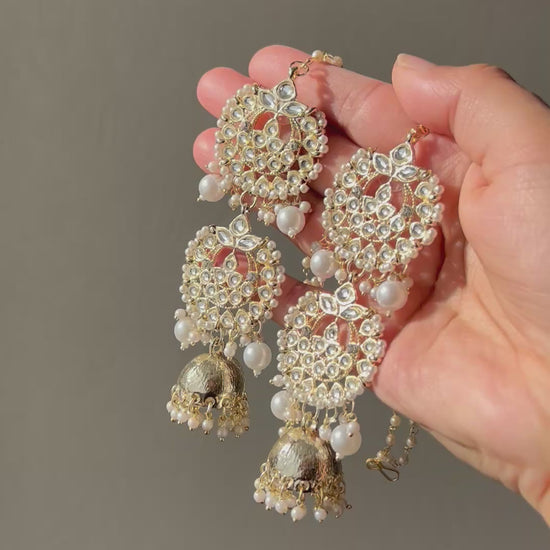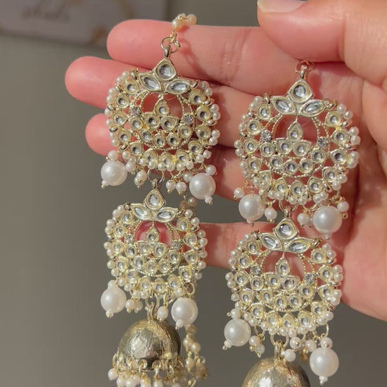 Inspired by the viral KASHMIRI earrings! Long pearl kundan jhumki with saharey. Lightweight!