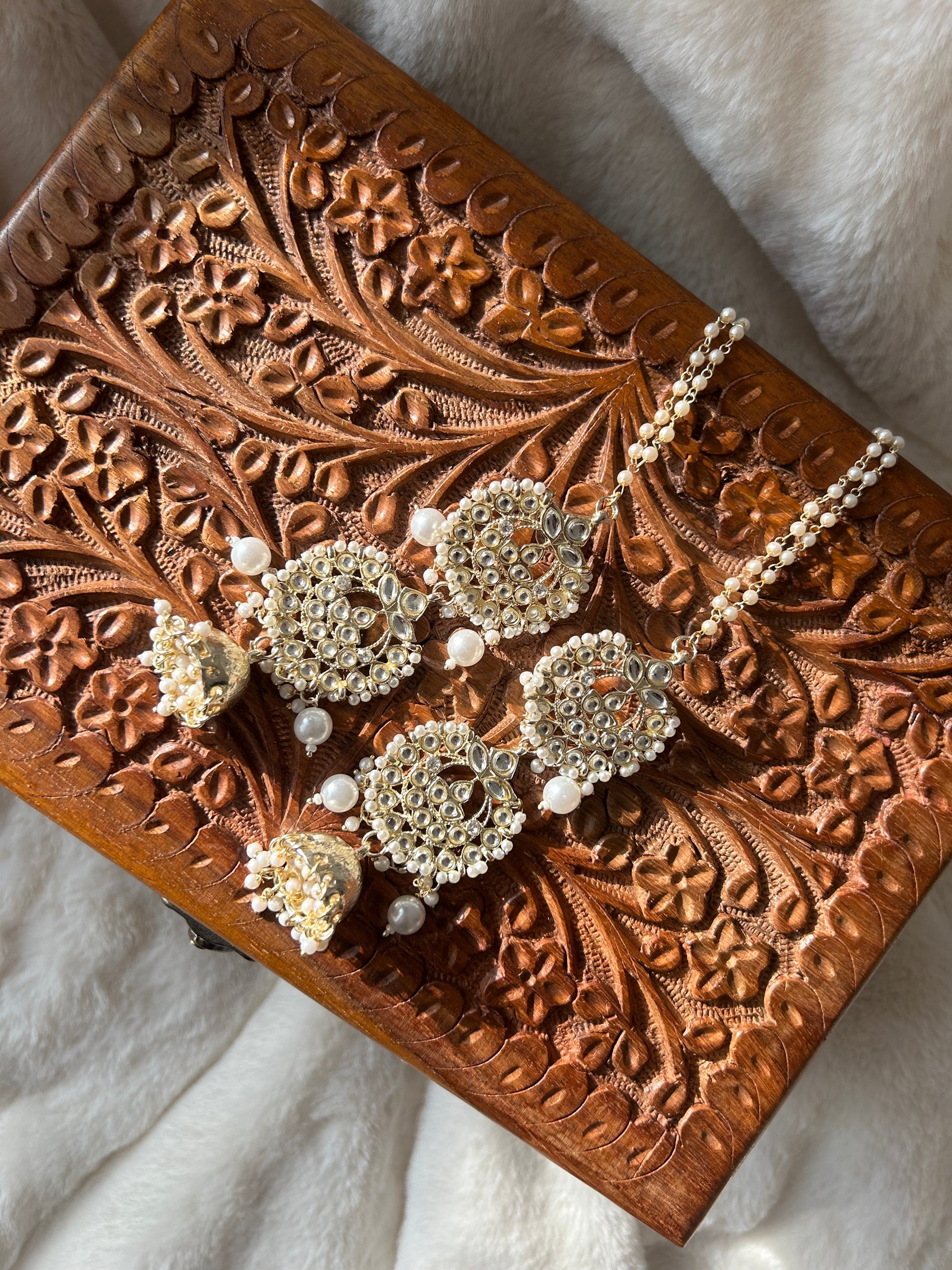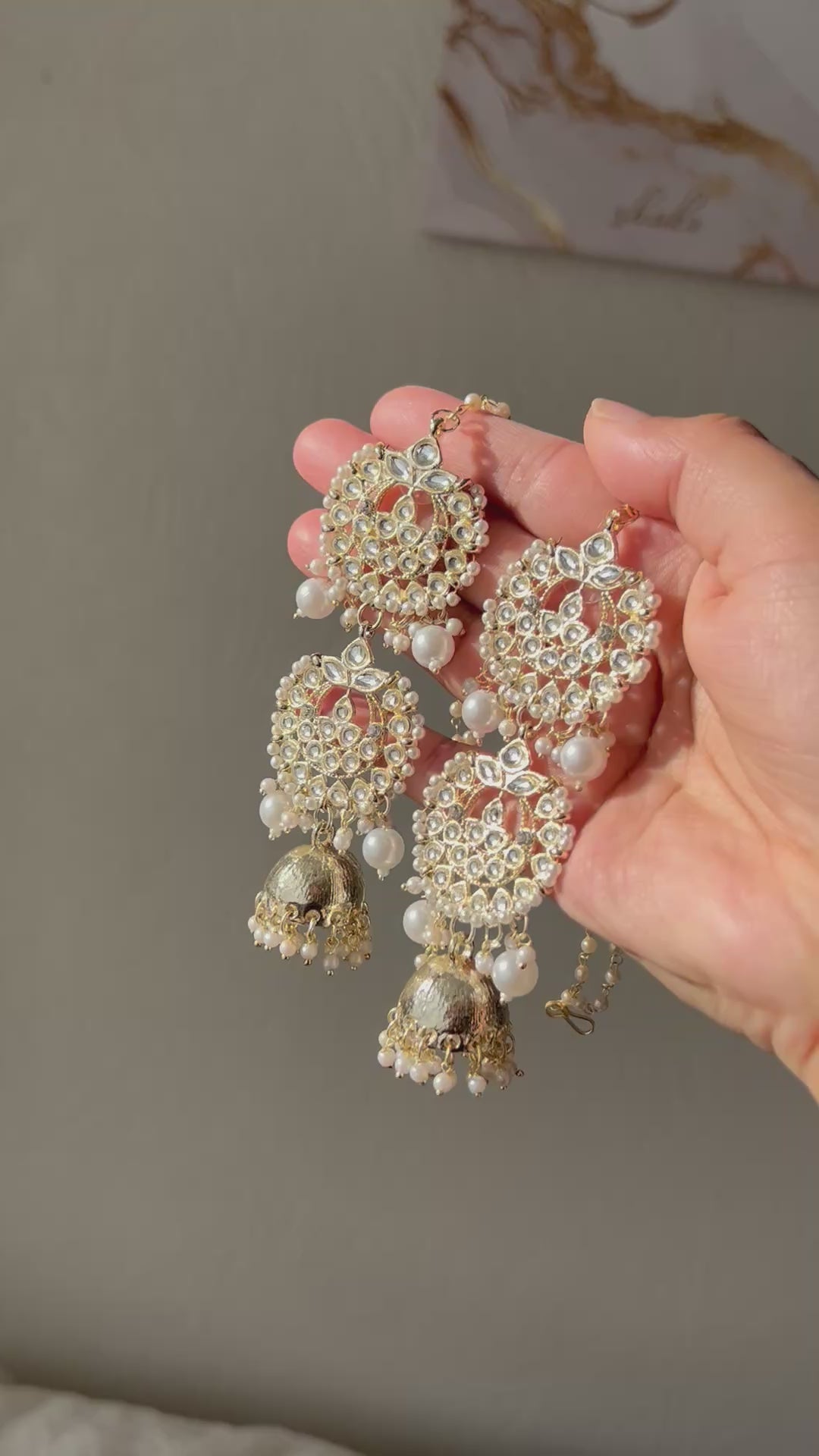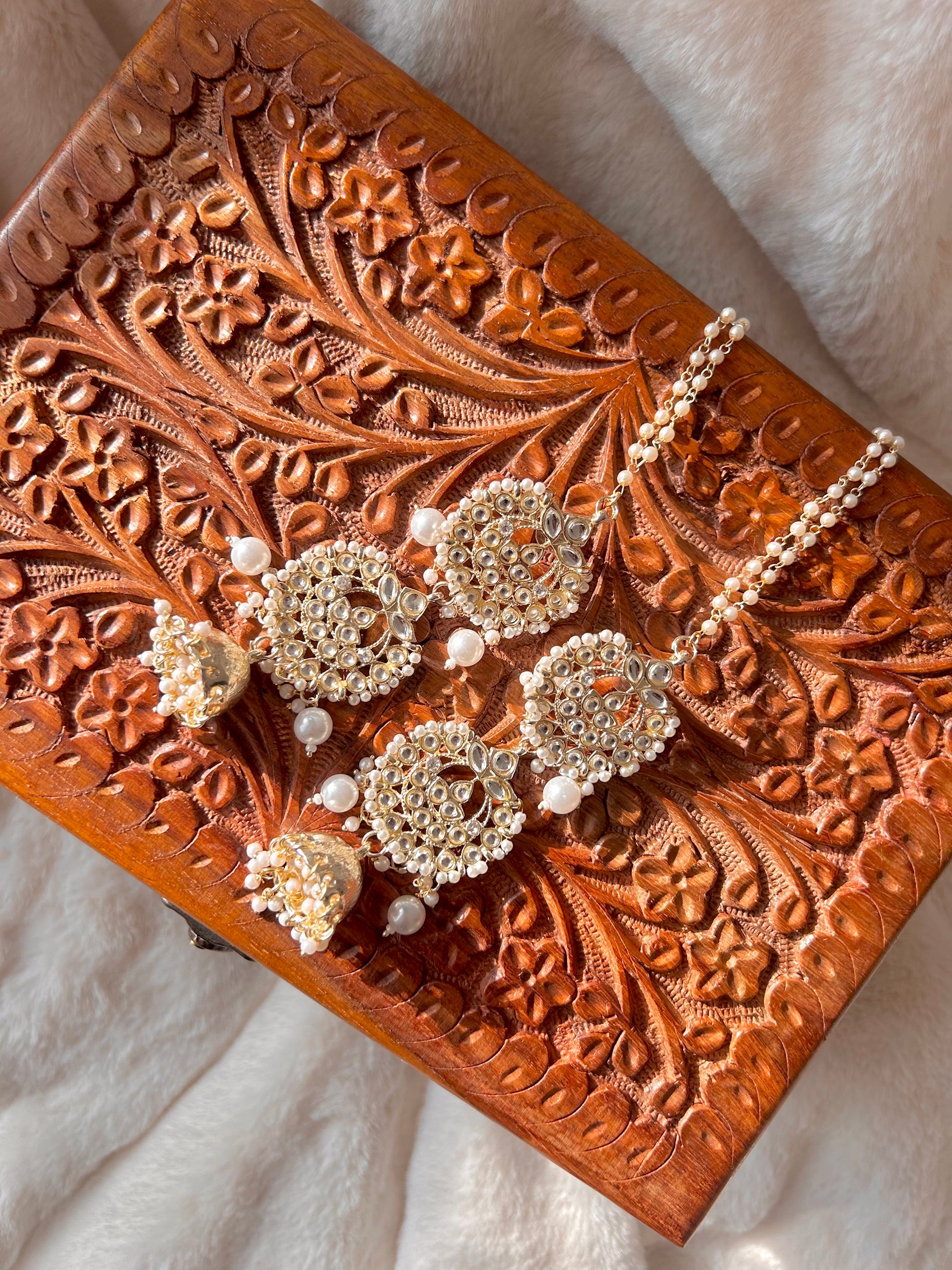 Inspired by the viral KASHMIRI earrings! Long pearl kundan jhumki with saharey. Lightweight!