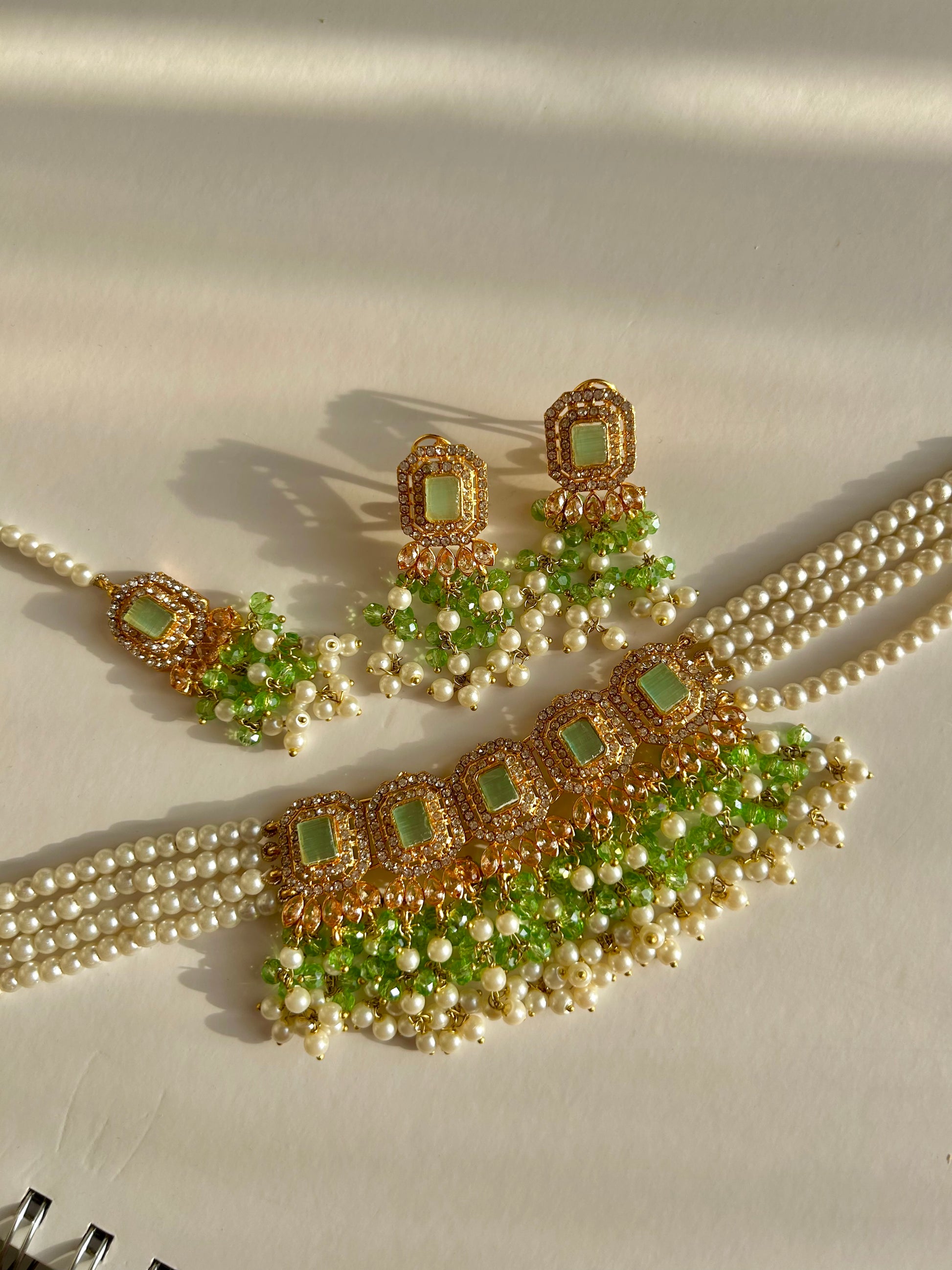 Minahil jewellery set - Light Green