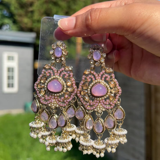 Stunning Lightweight kundan earrings with faux pearl and diamonté detailing adorned. Material used is gold plated steel