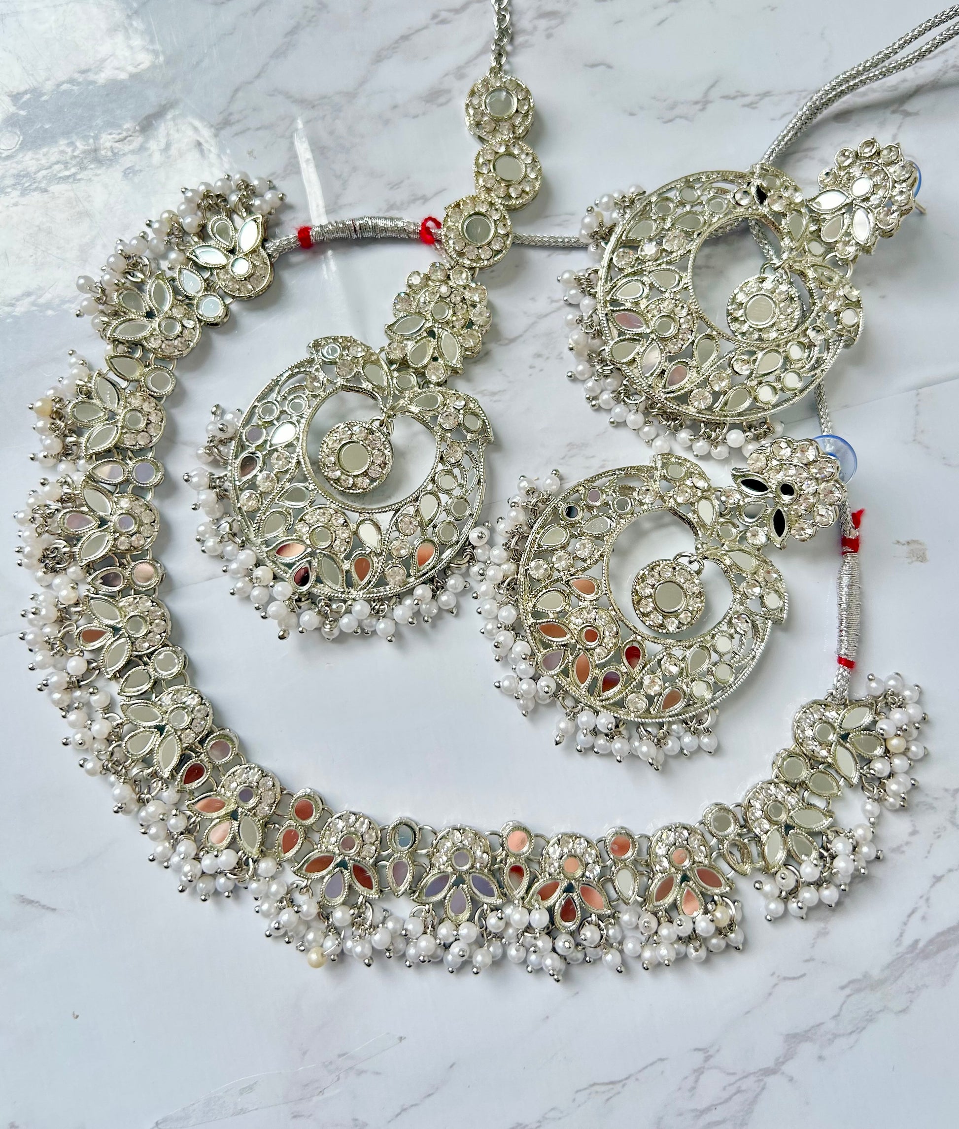 Beautiful necklace set: includes mirrored earrings, tikka and necklace!